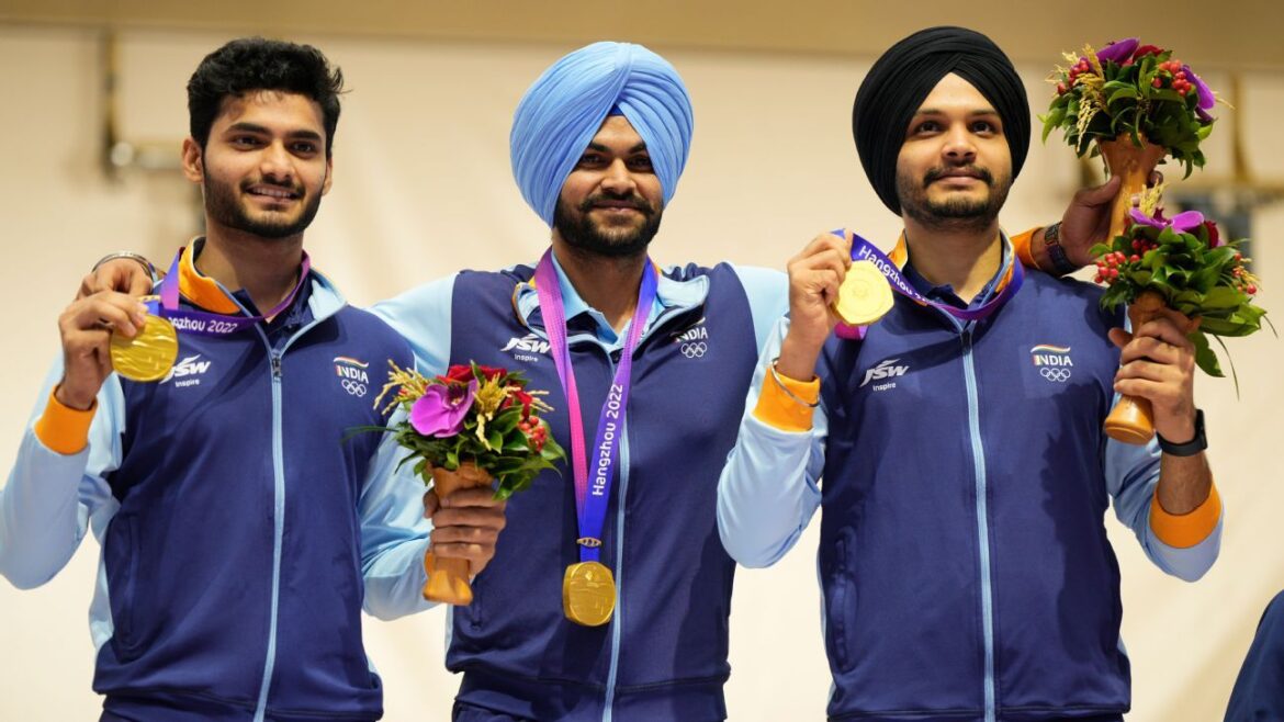 The Indian men’s 10m air pistol team overcame a slow start and shot an excellent second half in qualification to strike yet another shooting gold at the ongoing Asian Games in Hangzhou on Thursday.