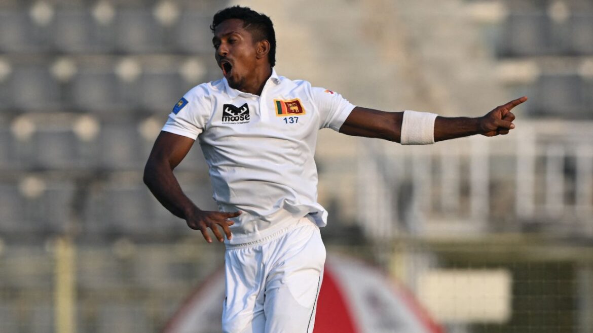 Vishwa took four wickets, which included Zakir Hasan and Najmul Hossain Shanto, both lbw, on the first evening. Rajitha had Mominul Haque on the first day and broke nightwatcher Taijul Islam’s resistance on the second, drawing the outside edge from both batters. He also removed Mehidy Hasan Miraz with a good-length ball that the allrounder tried to pull, only to get a leading edge to point. Kumara, playing his first Test after 12 months, removed Mahmudul Hasan Joy and Shahadat Hossain with awaygoing deliveries. Litton Das fell inside-edging a Kumara delivery that nipped back in.