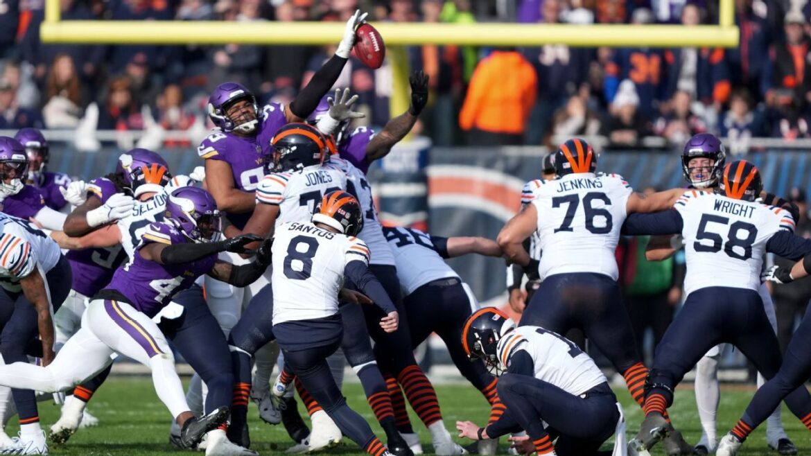 Just like Green Bay players the week prior, Vikings special teams players said they’d been preparing all week to knock one down because they knew that Santos’ low-trajectory kicks, combined with weaknesses in Chicago’s protection, provided the perfect recipe to prevent points.