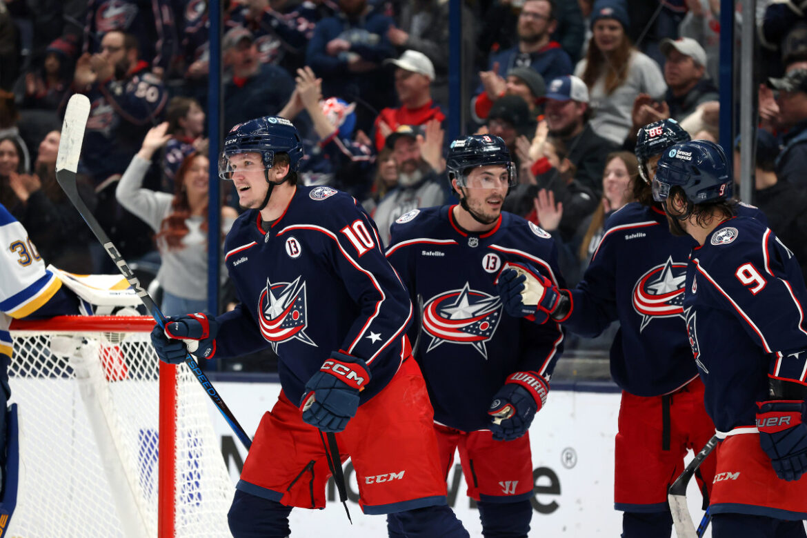 Dmitri Voronkov(14,15), Kirill Marchenko(17), Mikael Pyyhtiä(4), Adam Fantilli(8), and Mathieu Olivier(10), provided the offense for the high-powered Blue Jackets, and Elvis Merzļikins stopped 29 of 33 Blues shots in the Columbus win.
