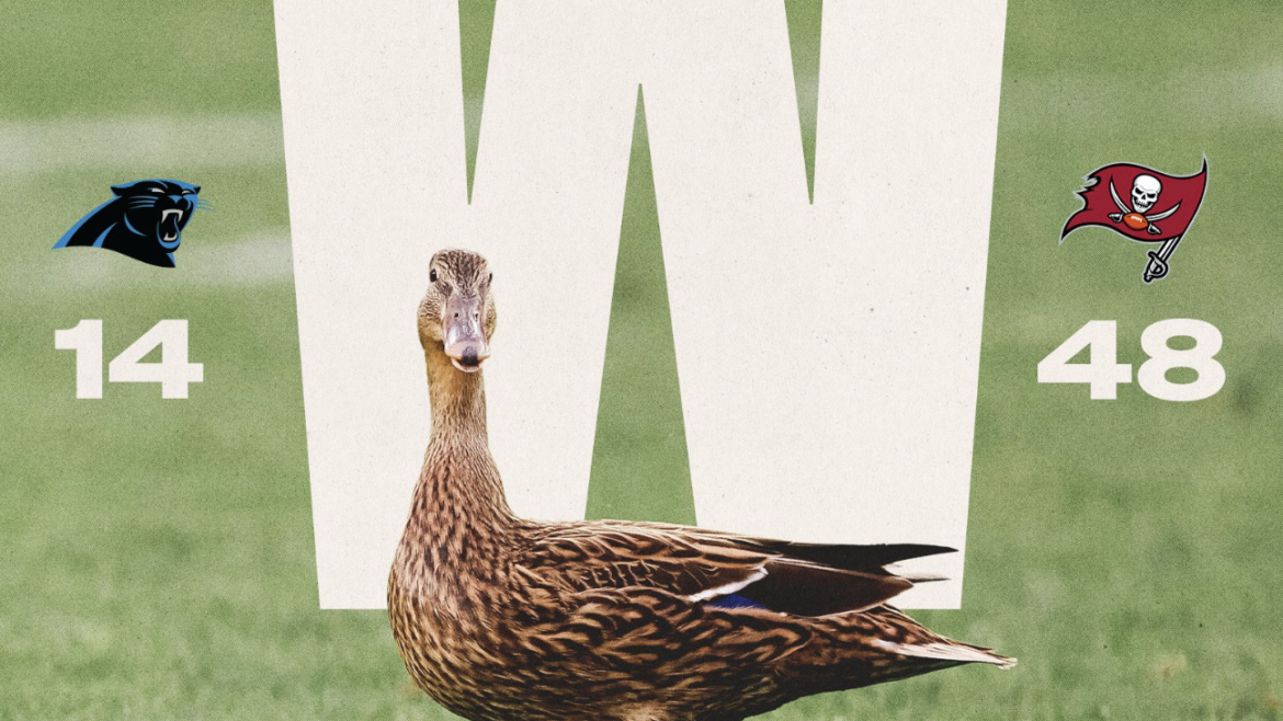 The duck’s appearance coincided with outside linebacker Joe Tryon-Shoyinka blocking a punt, which was recovered by inside linebacker J.J. Russell and returned 23 yards for a touchdown, extending the score to 40-14. After another touchdown by Jalen McMillan, the Buccaneers increased their lead to 48-14.