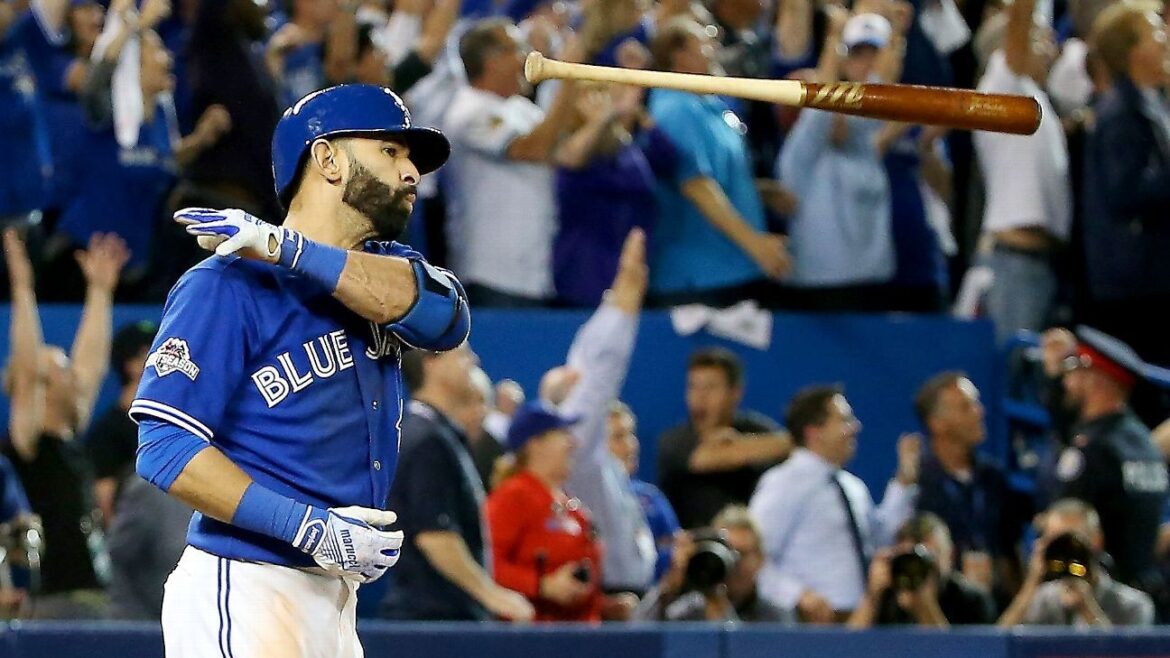 The tiebreaking three-run home run in the seventh inning of a deciding Game 5 of the 2015 American League Division Series against the Texas Rangers was capped by a memorable flip of the bat before he started rounding the bases in front of a raucous Toronto crowd.
