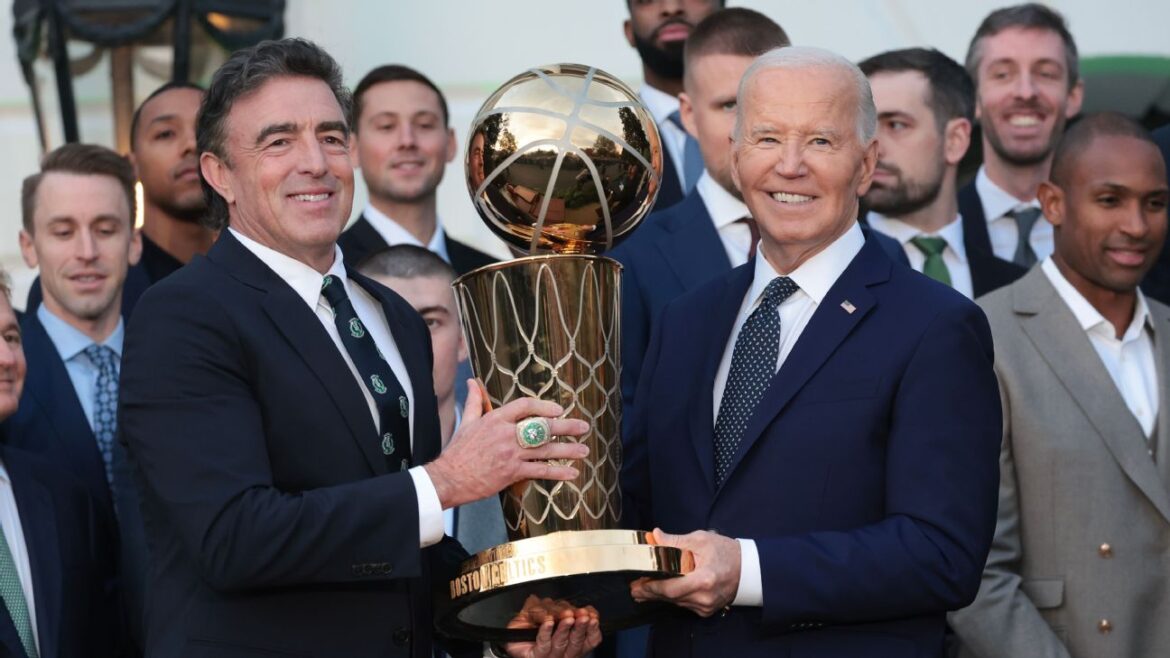 “It’s underway. There’s a lot of interest,” Grousbeck said of the sale on a conference call with reporters after a ceremony with President Joe Biden on the White House’s South Lawn to celebrate the team’s record-setting 18th NBA championship. “That is one comment, I guess. I would like to limit it to that, but I would say that the plan is that I will stay [in charge] for three more years. That’s what’s laid out. We’ll go from there.