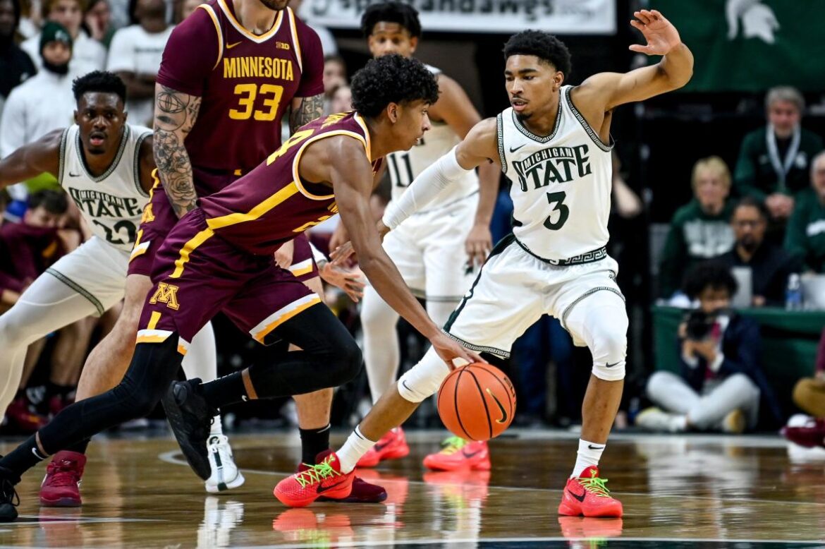 • Inside the matchup: In the meeting on Jan. 18 — won by MSU 76-66 — the Gophers pushed the Spartans late into that game. I think that helps the Spartans here. They know what it feels like to face Minnesota. They’ll respect them. This will be a slightly different Gophers team, with point guard Elijah Hawkins back in the fold. He missed the last meeting with a sprained ankle, forcing the Gophers to play a bigger lineup. I’m not sure that hurt them matchup-wise, but they weren’t as deep and that hurt when the fouls mounted. Hawkins is a small and elusive guard who makes the Gophers go. But it’s big man Dawson Garcia who’s the problem matchup for MSU — though the Spartans made him work for his 22 points in the last game, with Garcia missing 9 of 14 shots from the floor. The Gophers made seven 3s that night in East Lansing. But overall they are shooting just 29.6% from deep in conference play. But they are the league’s best 2-point shooting team at nearly 55%, a testament to how much work they get done in the paint.