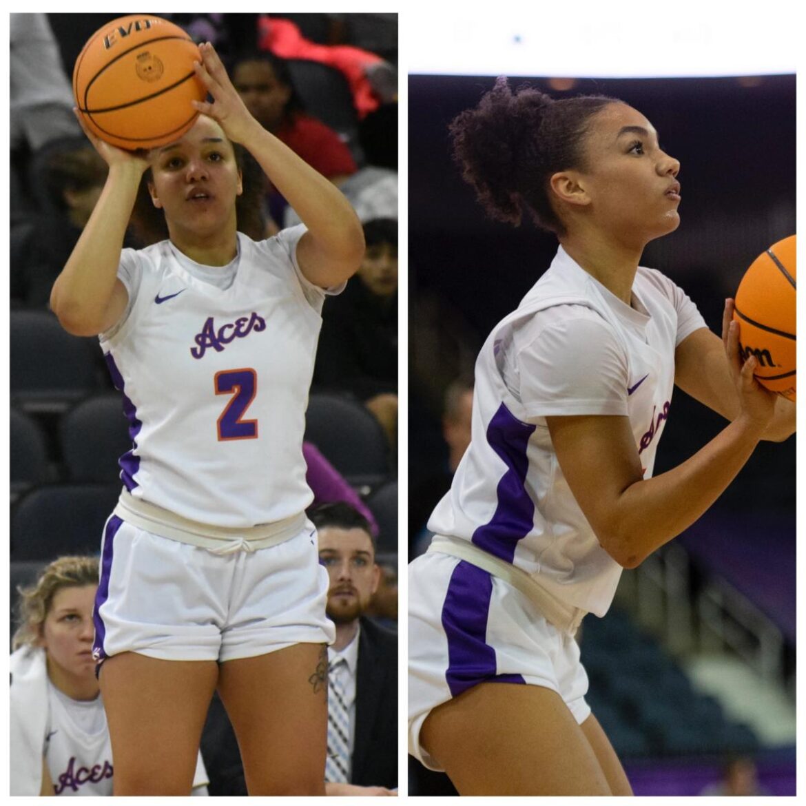 That connection brought them together again with the Purple Aces. Coach Robyn Scherr-Wells recalled a time in summer workouts when Alana had just joined UE from Lindenwood and one of the sisters hard-fouled the other. “I was just kinda waiting,” Scherr-Wells said. But nothing came of it. They carried on with their business. “It was just like normal for them,” she said. No one got mad. Both kept playing.