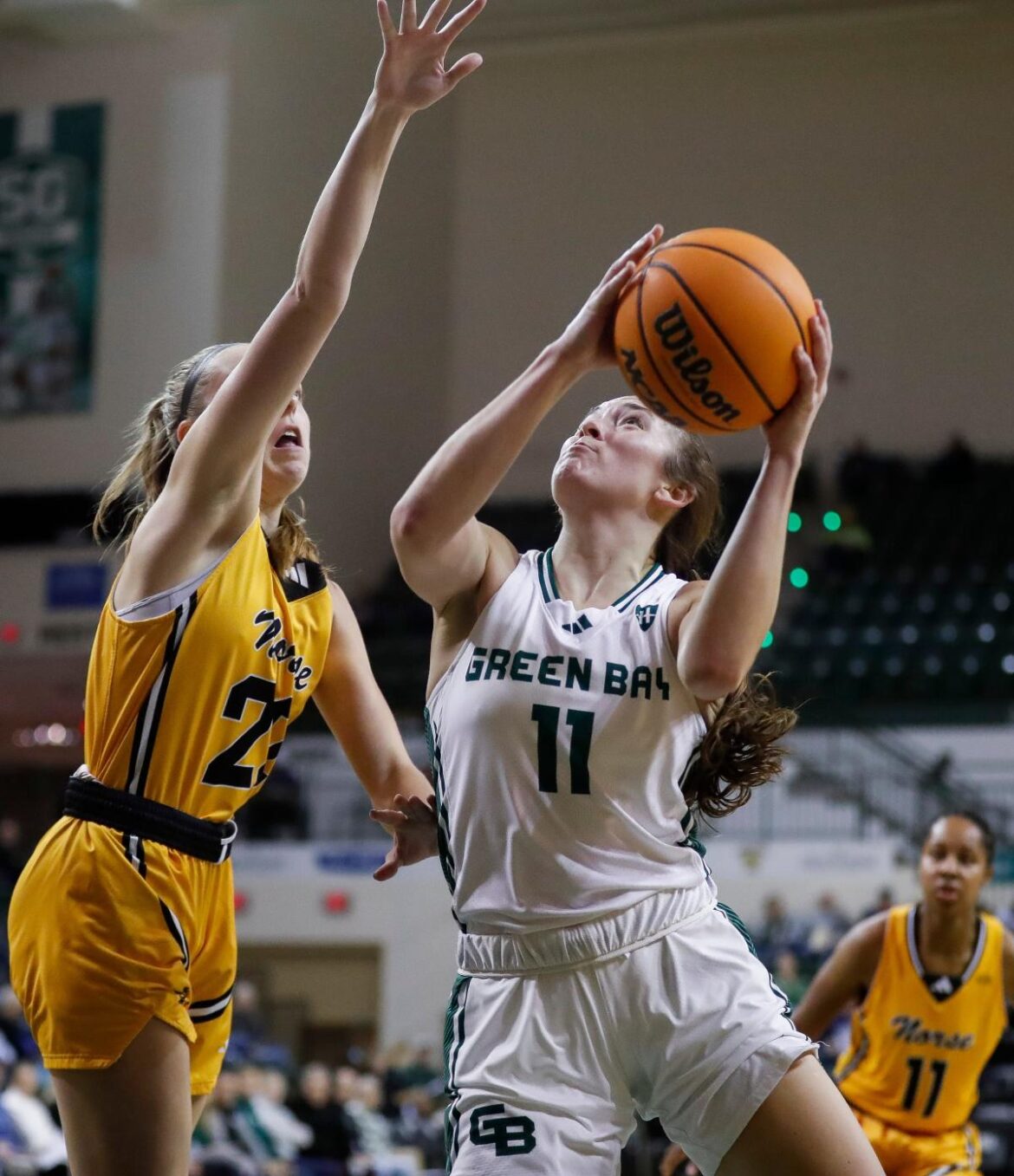 It’s been the same at UWGB, where the only teammate she towers over is point guard Bailey Butler.