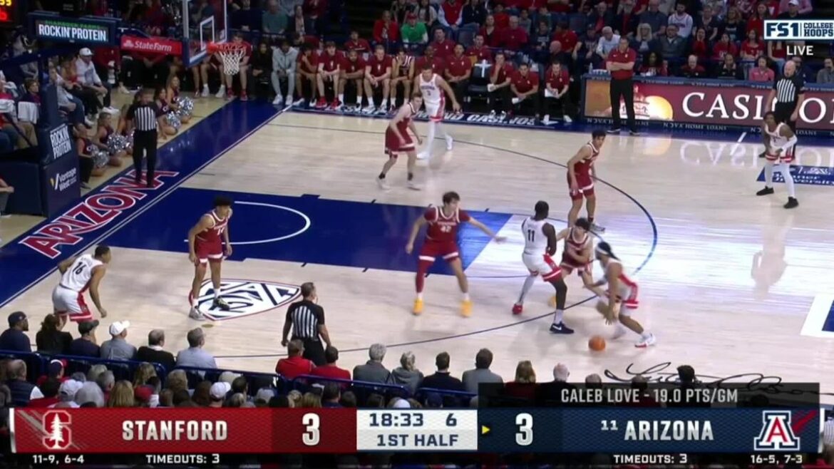 No. 11 Arizona men’s basketball beat Stanford 82-71 in Tucson, Ariz. on Feb. 4, 2024. The Wildcats improved to 12-0 at McKale Center. Arizona’s Oumar Ballo had 18 points and 13 rebounds. Caleb Love had 18 points, eight rebounds and seven assists. Stanford’s Maxime Raynaud scored a game-high 29 points.