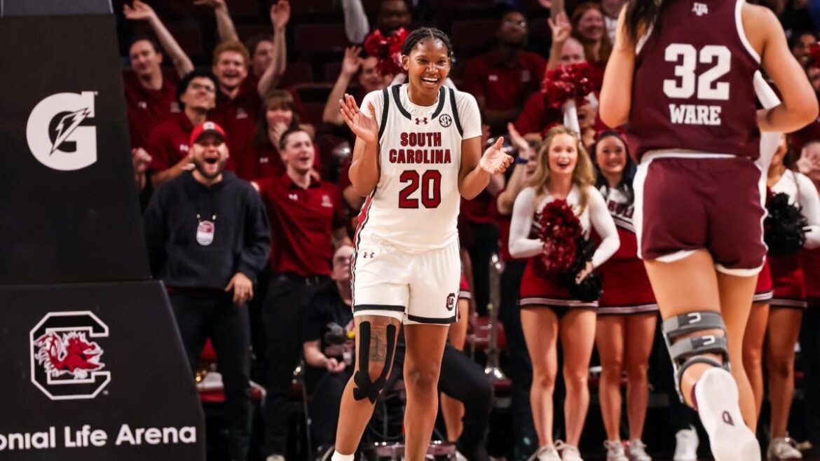 The Gamecocks (15-1, 3-0 Southeastern) are playing thin after junior forward Ashlyn Watkins suffered a season-ending injury in their last game, but they rolled over the Aggies (8-7, 1-2) with smothering defense. Texas A&M shot a mere 20% in the first half, as South Carolina built a 20-point lead, and finished at 29%.