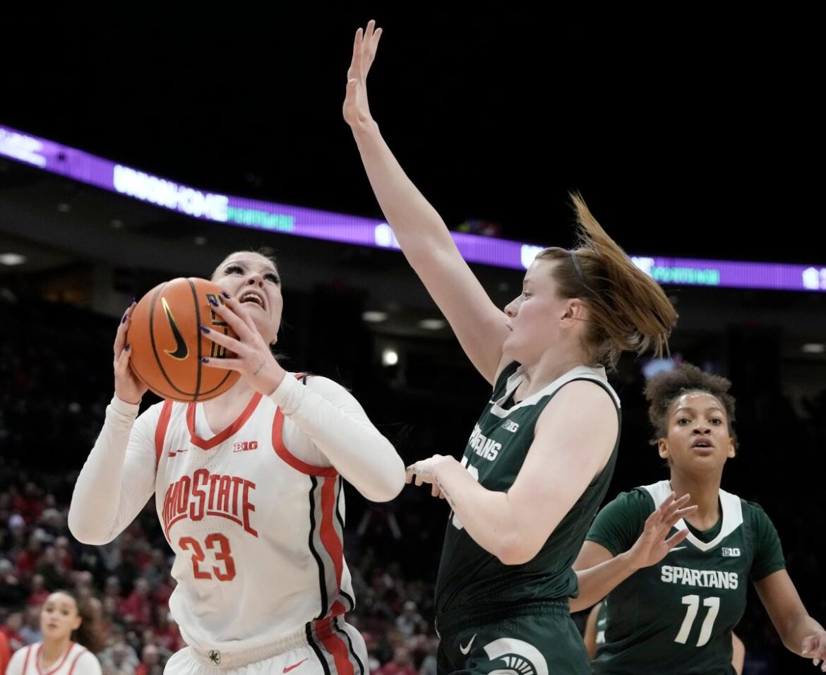 Celeste Taylor, coming off a strong fourth-quarter performance in Ohio State’s victory against Minnesota on Thursday, continued riding that momentum in East Lansing. The graduate guard scored 10 of her 20 overall points in the first 10 minutes of play, helping put the Buckeyes ahead 26-19 in the first.