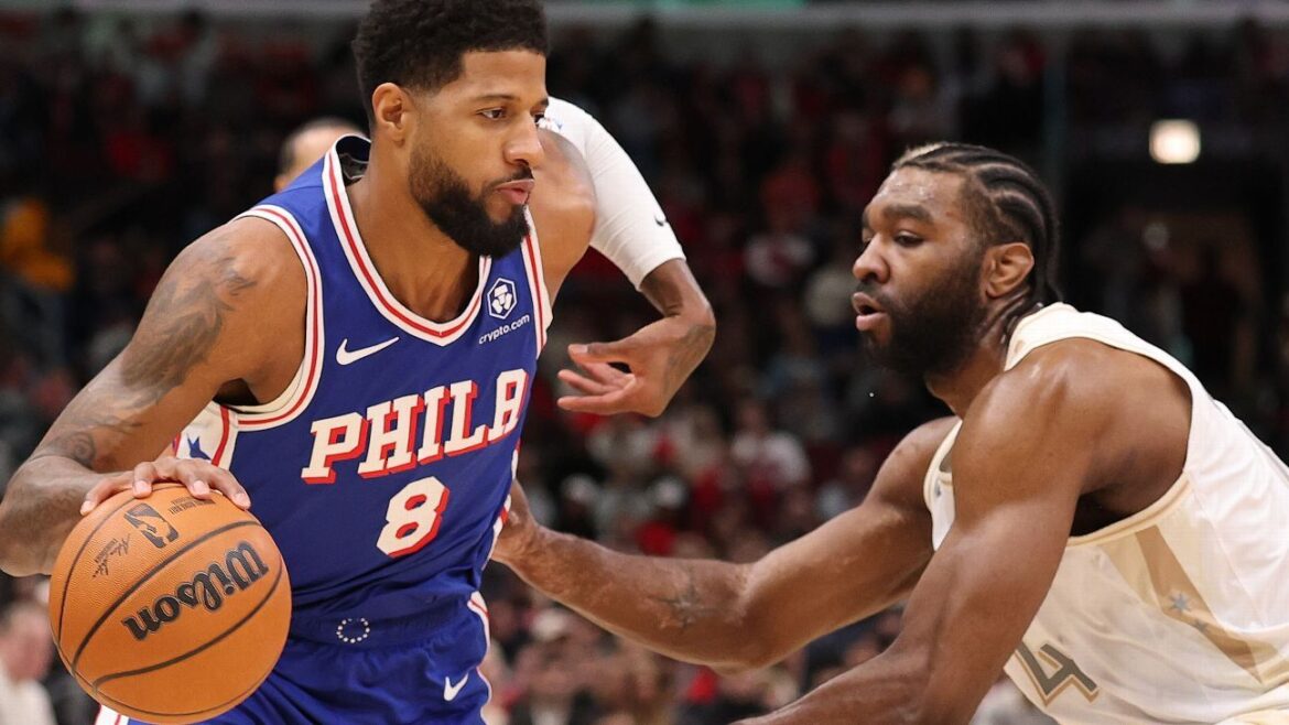 CHICAGO — Philadelphia 76ers forward Paul George exited in the second quarter of Saturday’s 109-97 victory over the Chicago Bulls and did not return after jamming his left pinkie.