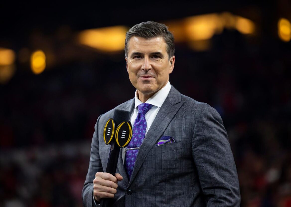 Jan 10, 2022; Indianapolis, IN, USA; ESPN commentator Rece Davis following the Alabama Crimson Tide game against the Georgia Bulldogs in the 2022 CFP college football national championship game at Lucas Oil Stadium. Mandatory Credit: Mark J. Rebilas-USA TODAY Sports