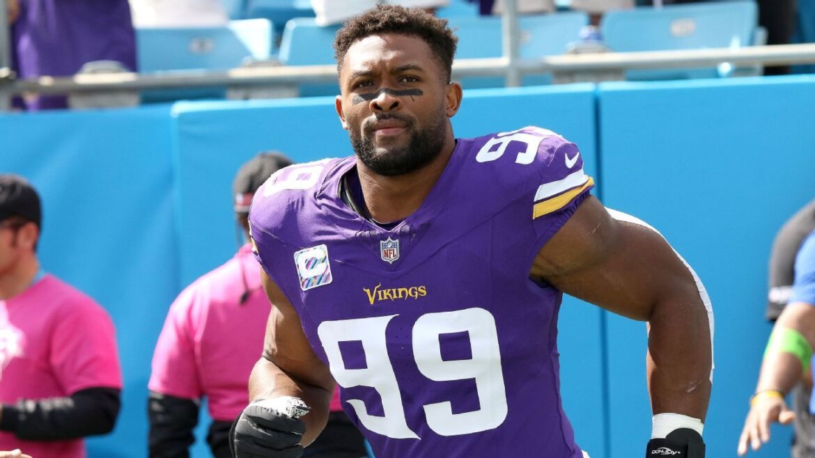 Hunter, 29, produced arguably the best season of his career in 2023 in defensive coordinator Brian Flores’ scheme. He finished with 16.5 sacks and 1,006 snaps, both the highest figures of his career. He also earned consistent plaudits from Flores for his ability and willingness to set the edge in the Vikings’ run defense, and along the way led the NFL with 23 tackles for loss.