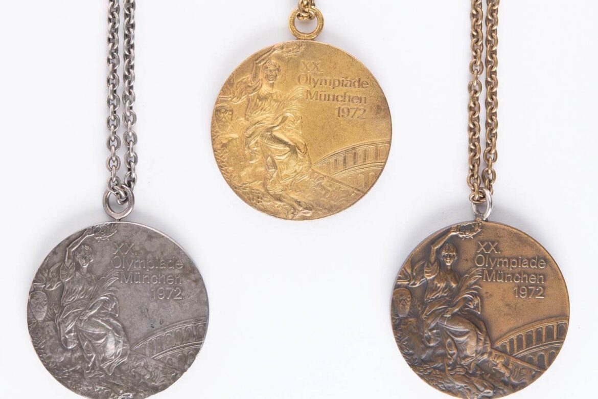 A trio of Olympic medals from the 1972 Games will be up for grabs at an Olympic themed auction by Boston-based RR Auction. Steve Genter, who won a medal of each color at those Games, has decided to make available his medals from a remarkable performance that was overshadowed by U.S. teammate Mark Spitz but simply remarkable under the circumstances.