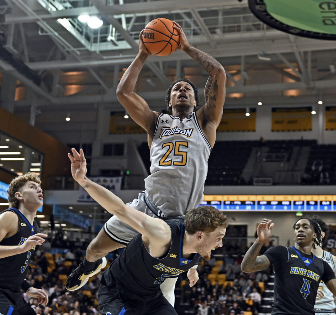 Towson responded with an 11-4 burst to narrow the deficit to 19-17 with 10:23 remaining. But the Blue Hens used timely buckets to go up 26-21 with 8:04 left.