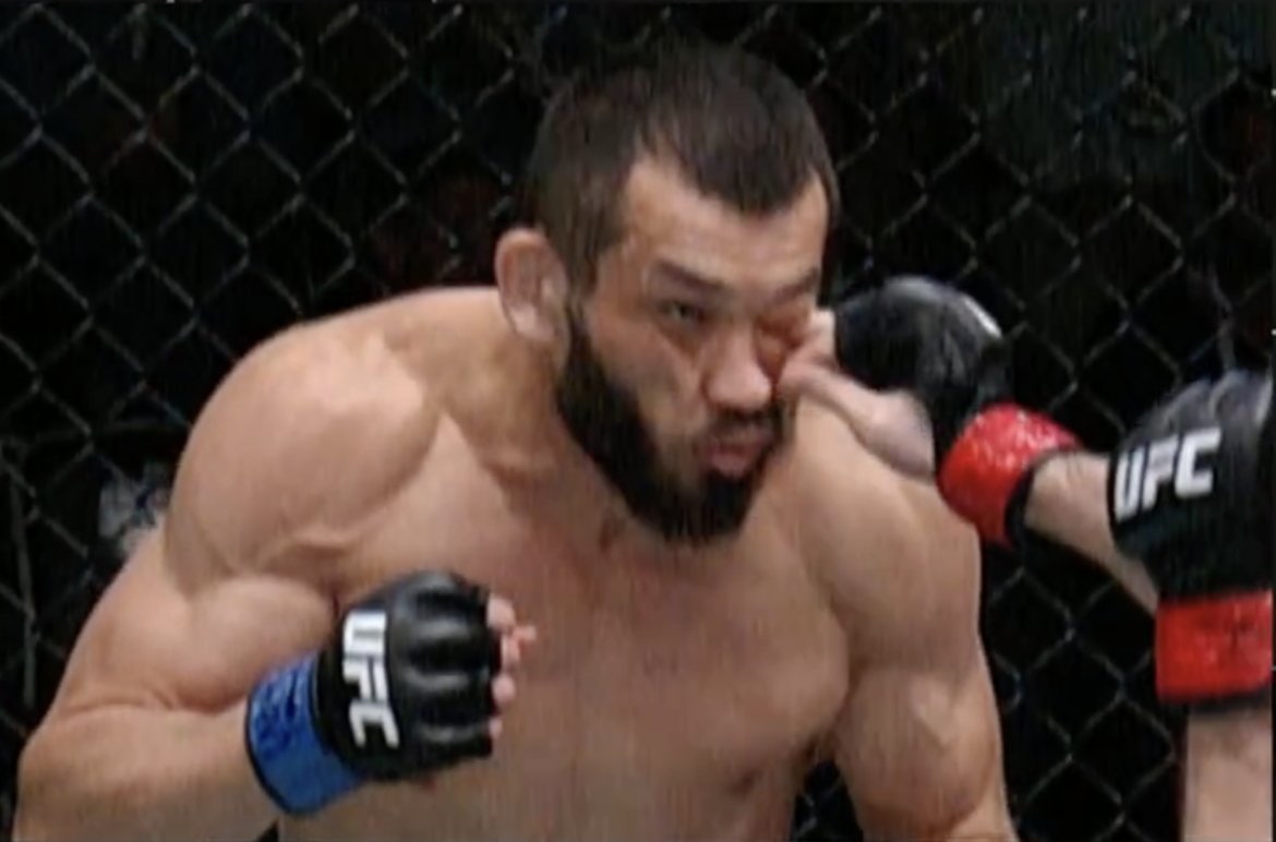 Referee Herb Dean called time and brought in the cageside physician. Through an interpreter, Muradov told Dean he couldn’t see. His claim was supported by significant and instant swelling around his eye.